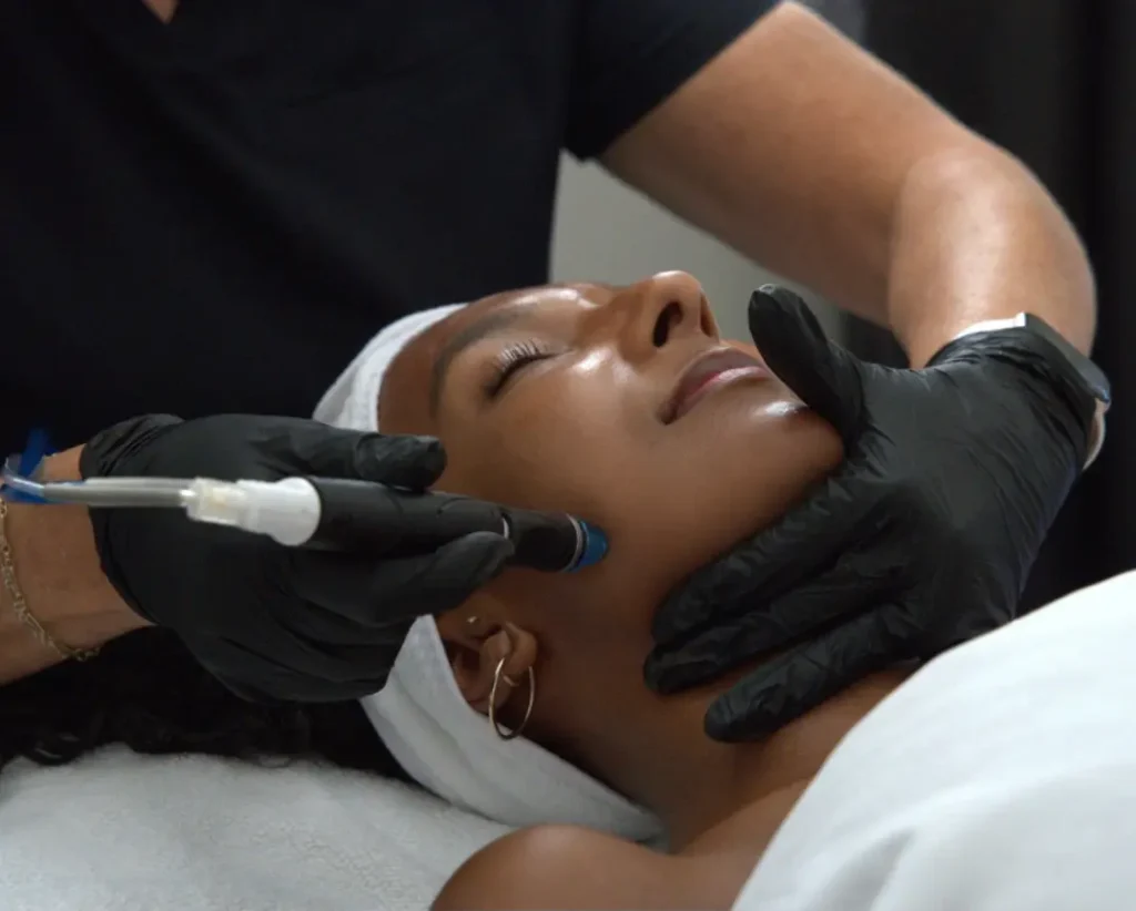A HydraFacial is a medical-grade facial treatment that deeply cleanses, exfoliates, extracts impurities, and hydrates the skin using advanced vortex technology. It is designed to improve skin tone, texture, and overall clarity in a single session without irritation or downtime. Unlike traditional facials that rely on manual extractions or surface-level products, a HydraFacial works beneath the surface to remove debris from the pores while simultaneously delivering targeted serums that nourish and protect the skin.